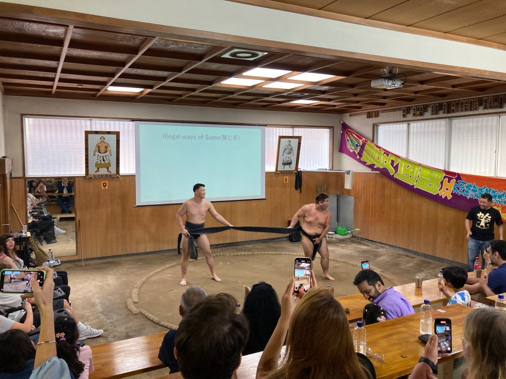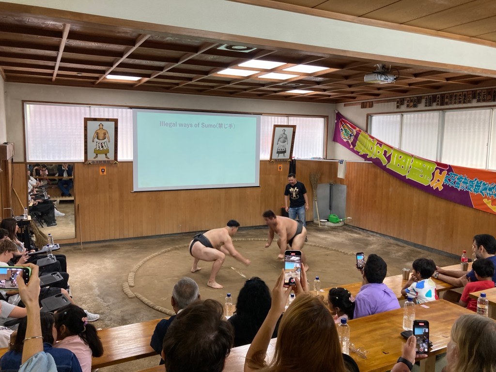 The booked event was a Sumo show (note the pun in the title of this blog 🙂). It was fun and educational, starting with a brief lecture on the history and basics of Sumo wrestling before a couple of retired Sumo wrestlers came out to do demonstrations.
