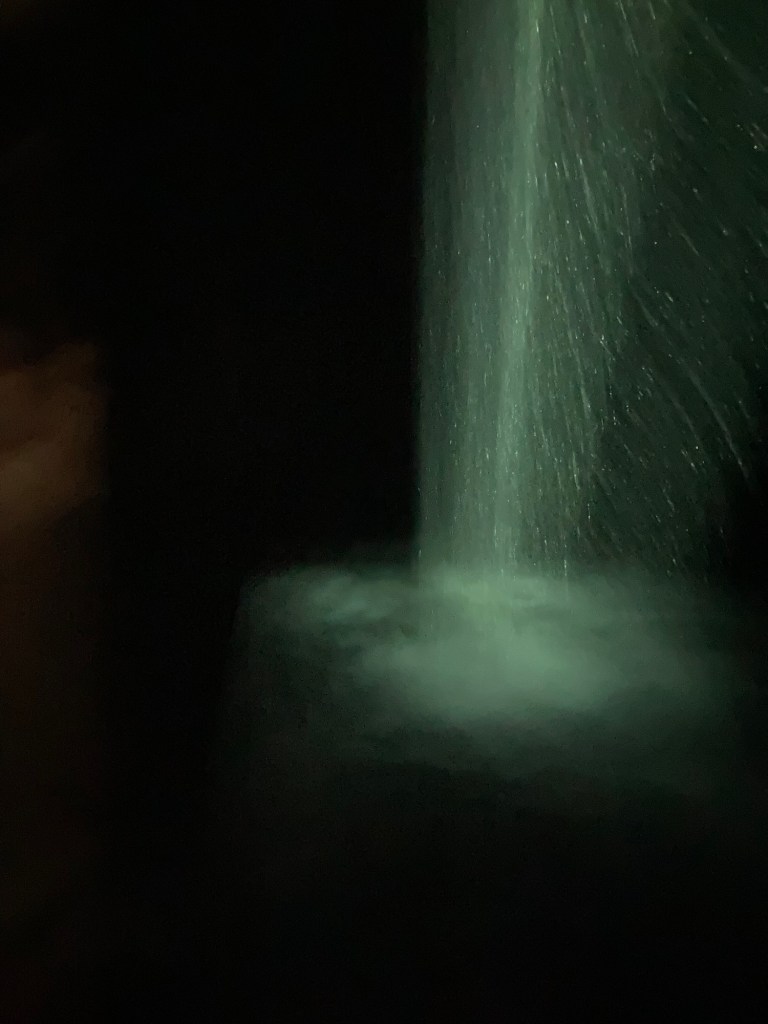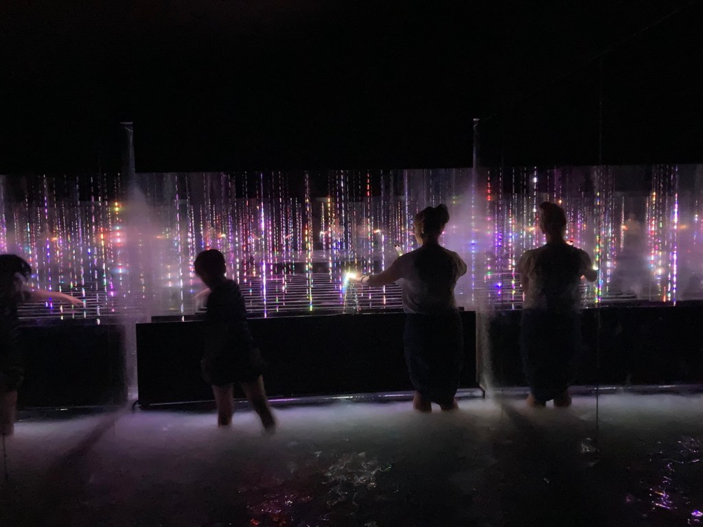 The first of these artworks was a room full of long strands of lights hanging ceiling to floor. There were passages through them and it was like a maze through a waterfall diffracting the light.