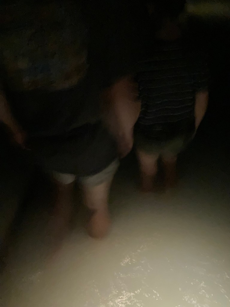 Next was a room filled knee high with water that had light projections of fish swimming through it. Xavi loved this room, perhaps a little too much.